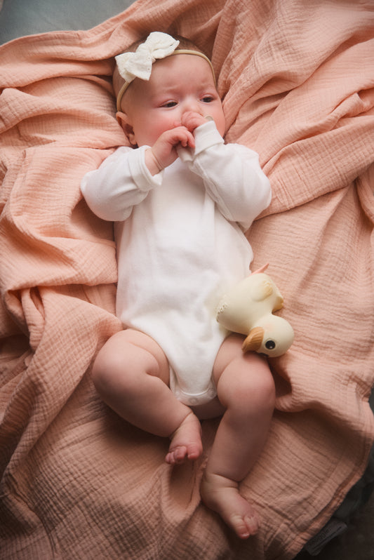 Give your baby the softest knit baby blanket! It will keep your baby feeling warm and secure all day and through the night and is made from organic cotton in baby neutral colors.
