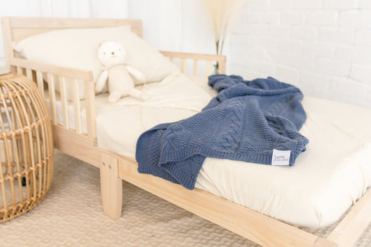 Sweet Acorn's toddler sheet sets are made from 100% jersey knit and are perfect for your child's first big kid bed. They are designed to be ultra soft while still durable, and fit securely around any standard sized crib mattress.